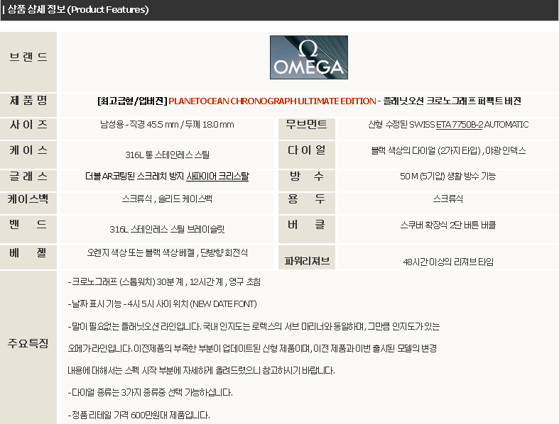 오메가 PLANETOCEAN CHRONOGRAPH ULTIMATE EDITION-3 요약정보 및 구매