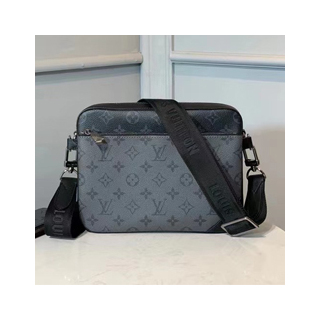 모노그램 이클립스 캔버스와 모노그램 이클립스 리버스 캔버스가 조화를 이루는 트리오 메신저 남성 백. 그레이 색조의 아이코닉한 톤온톤 모티프가 돋보이는 기능적인 하이브리드 실루엣. 전통적인 크로스 바디 디자인에 탈착형 지퍼 포켓과 스트랩에 달린 동전 지갑으로 색다른 매력을 더한 아이템.
